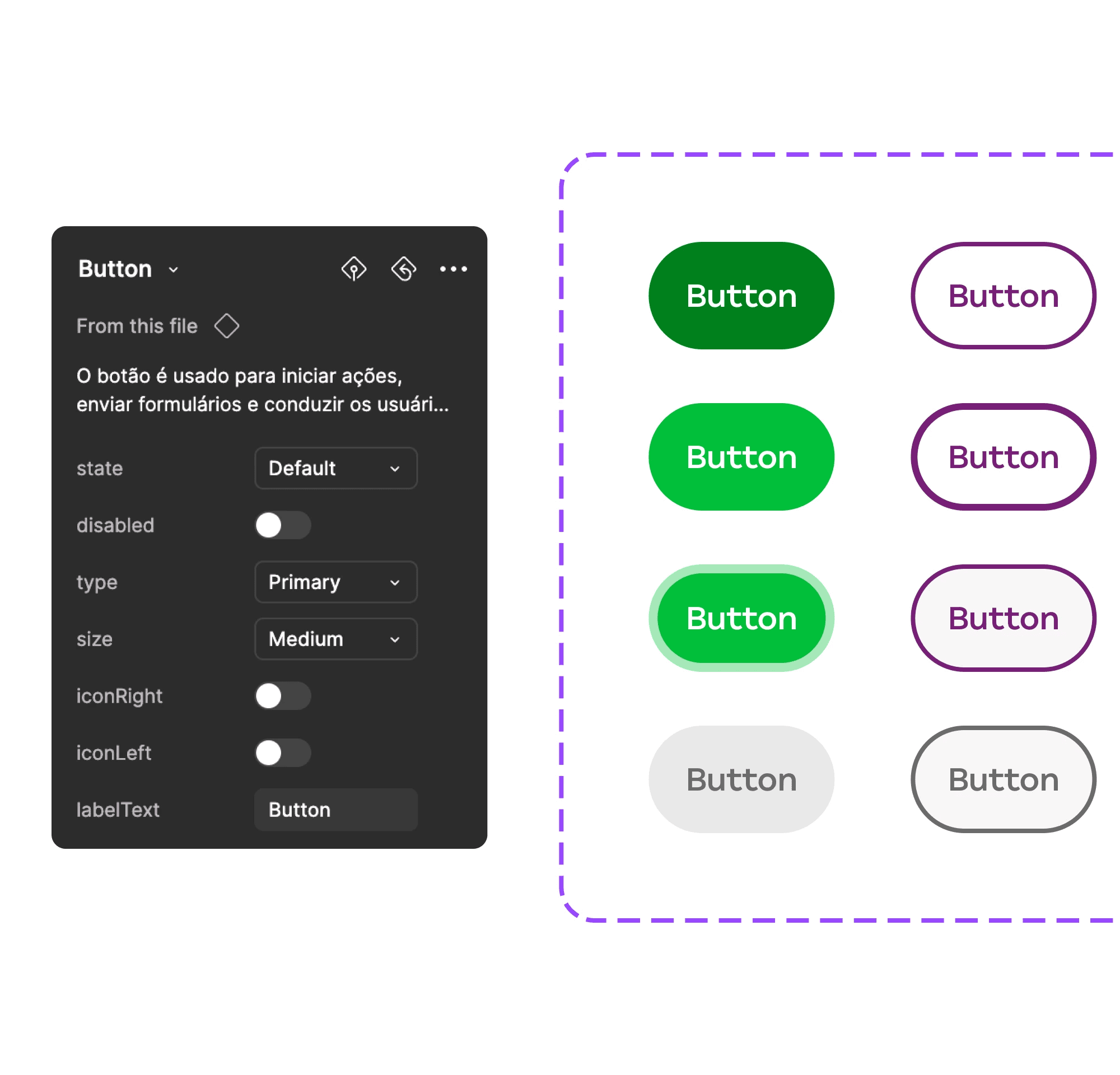 – Defini propriedades (props) no Figma com naming conventions idênticas às do Angular, que permitiu um handoff mais direto e reduziu erros de interpretação.