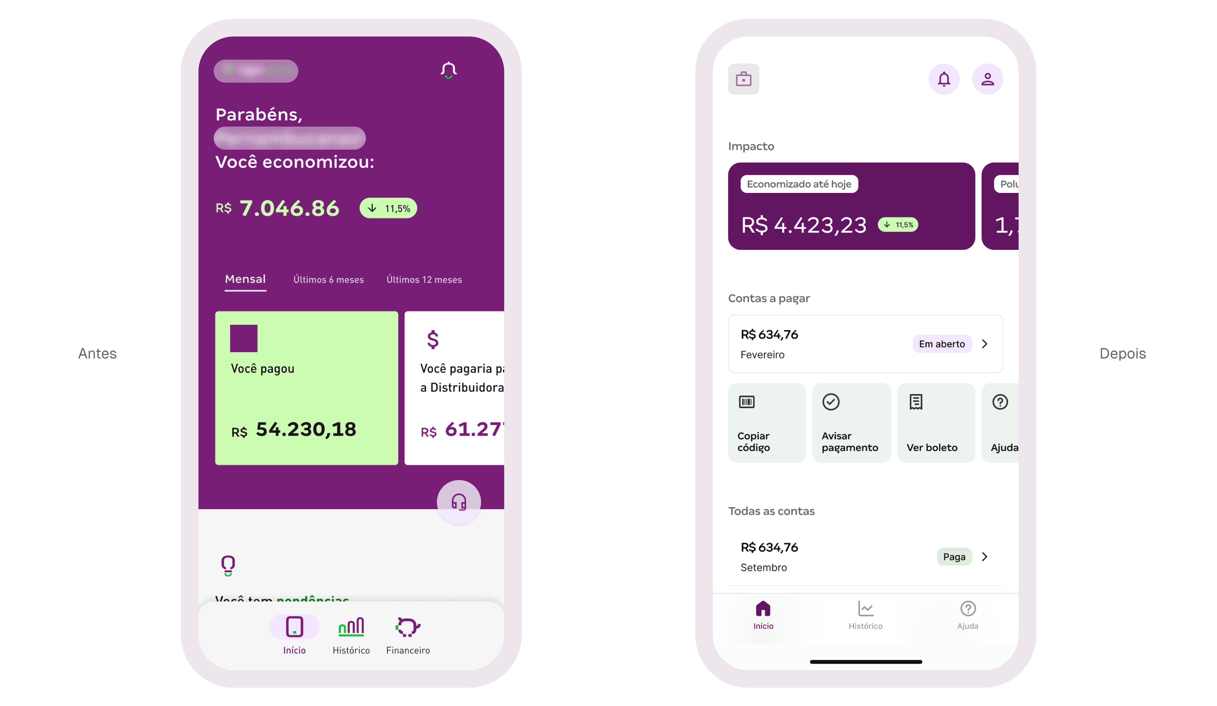 app – antes e depois