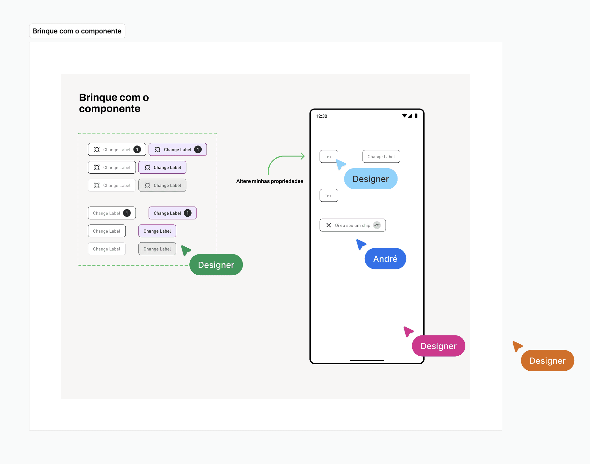 – Criei o Lab, um arquivo no Figma que funcionava como um playground, onde os designers testavam novos componentes antes do release oficial